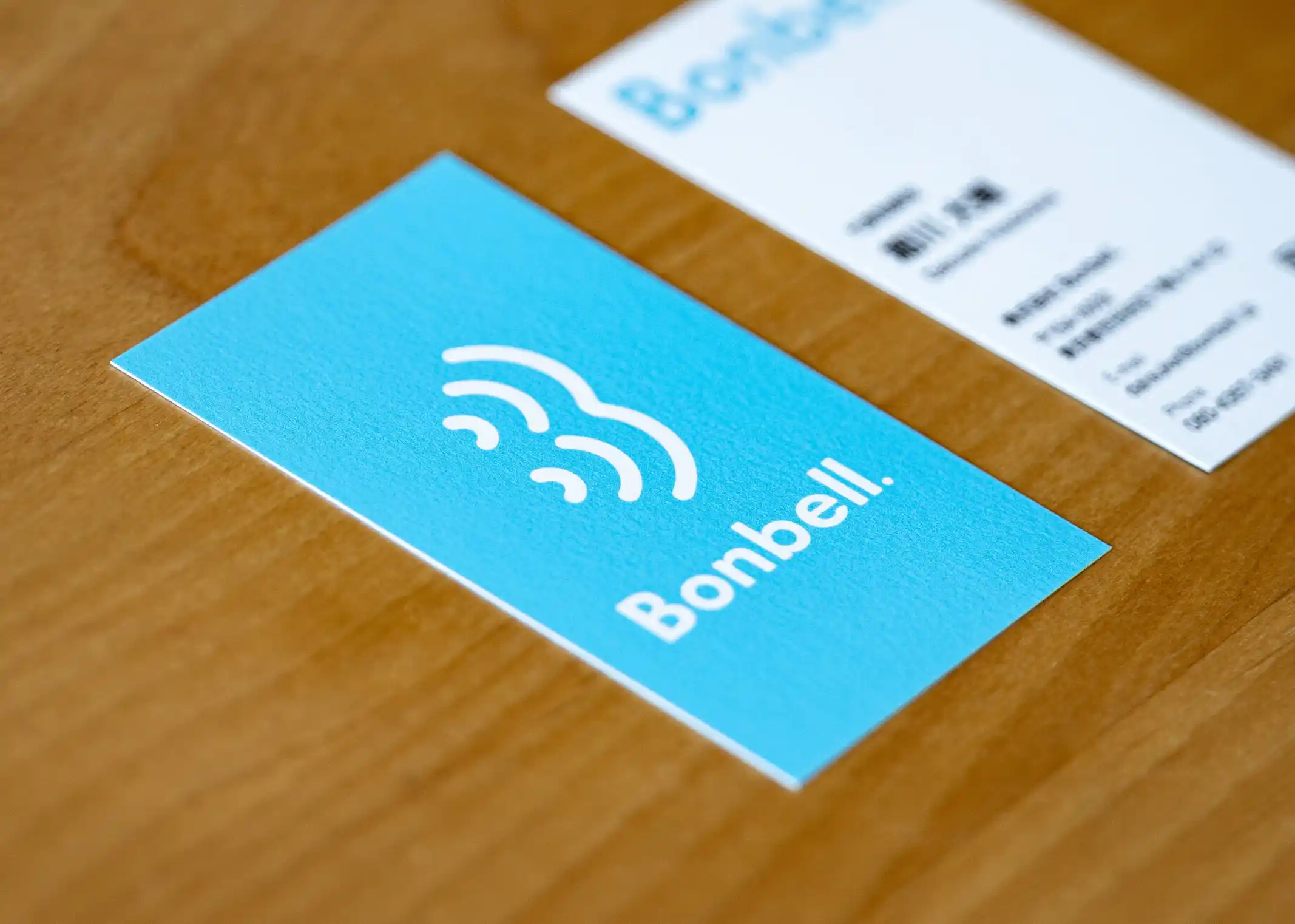 「株式会社Bonbell.」は、スイミングを通じて一人ひとりの成長を支える企業です。ロゴは頭文字「B」をモチーフに、鐘の共鳴音と泳跡の波を抽象化。企業理念である「共有・共存」と水泳事業の本質を表現し、創業者夫妻の歩みが大きな波となって広がる想いも込めています。